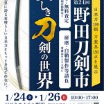 The 24th Noda Token Ichi was held for three days from Friday, January 24th at the Business Hotel Noda. This time, in addition to the local free paper "Chiiki Shimbun", we also advertised the event in the Chiba edition of the Yomiuri Shimbun and posted posters at the four nearest stations on the Tobu Noda Line. Thanks to the good weather, the fair was busy and crowded every day. The first day of this event was the 89th birthday of my father, founder of Token Matsumoto. He worked tirelessly selling the swords for three days, chatting with familiar local customers. The first sales event of 2025 got off to a good start, and all the staff returned home in a happy mood.