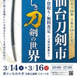 The 6th Sendai Token Ichi was held for three days from Friday, March 14th at Yume Messe Miyagi in Sendai, Miyagi Prefecture. In addition to repeatedly placing advertisements in local newspapers, this time we received many items from a local sword collecter and sold many local swords listed in the book of "Sendai Domain Swordsmiths directory [仙台藩刀匠銘譜]", which became a topic and was a huge success. Of the 18 swords sold, 16 were local swords. This shows the strong hometown pride that local sword enthusiasts have for their hometown. The three fulfilling days flew by and I had many great conversations with many local people.