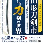 The 4th Yamagata Token Ichi/Sword Fair was held for three days from Friday, April 25th at Yamagata Big Wing (Yamagata International Plaza). We had not only local customers who were purchasing Japanese swords for the first time, but also sword enthusiasts who came all the way from Fukushima, Miyagi, and Iwate prefectures. All of our staff are filled with gratitude to the customers who traveled from prefectures to visit our Token Ichi all over Tohoku. We will do our utmost to make our Token Ichi which all visitors will be glad to have come to!