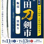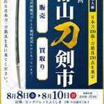 The 13th Koriyama Token Ichi was held for three days from Friday, August 8th at the Big Palette Fukushima (Fukushima Prefectural Industrial Exchange Center), a complex convention center in Koriyama City, Fukushima Prefecture. While promoting the event, we have continued to hold it twice a year, every six months, and as a result, we were able to attract not only local Fukushima sword collecters, but also familiar customers from neighboring prefectures such as Ibaraki, Tochigi, Yamagata, and Iwate. It was a busy three days, and we had many rewarding experiences, including the return of local swords made in Shirakawa, Nihonmatsu, and Aizu to their homeland, first-time buyers of Japanese swords were many, and a collector traded his part of collections from our swords. Our next Koriyama Token Ichi will be in February of next year, and we will do our best to make it an exhibition and sale that will delight sword enthusiasts!