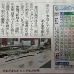 The 12th Koriyama Token Ichi was held for three days from Friday, February 21st at Big Palette Fukushima in Koriyama City, Fukushima Prefecture. The strongest cold wave had been stagnant in the Tohoku district, and there were concerns about heavy snowfall, but fortunately Koriyama was blessed with good weather, and the local newspapers Fukushima Minpo and Fukushima Minyu Newspapers continued to cover the sales event, so it was very busy every day. It is very rewarding to hear many regular customers say they look forward to the Koriyama Token Ichi being held every six months. The next 13th Koriyama Token Ichi will be held in August, six months from now. We will do our best to meet the expectations of Fukushima sword enthusiasts !