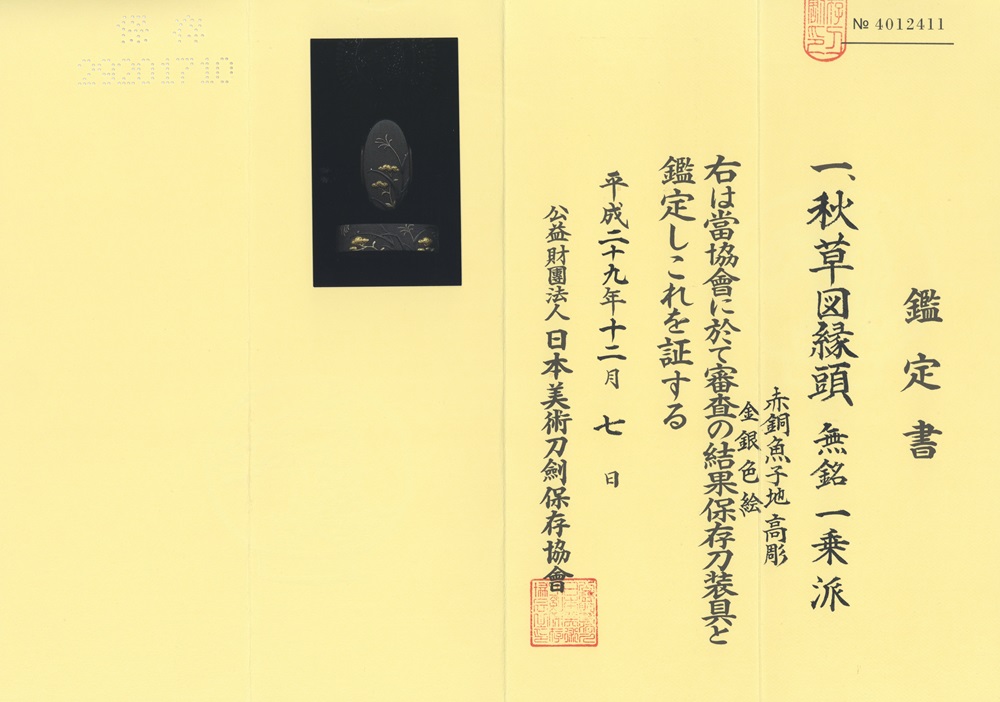 | 鑑定書 | 保存刀装具 |