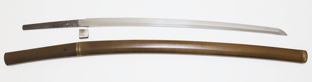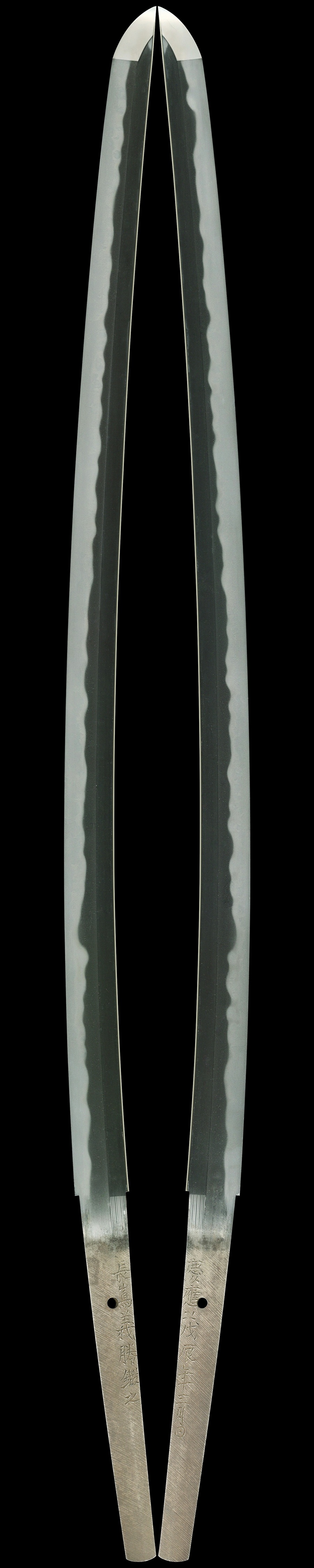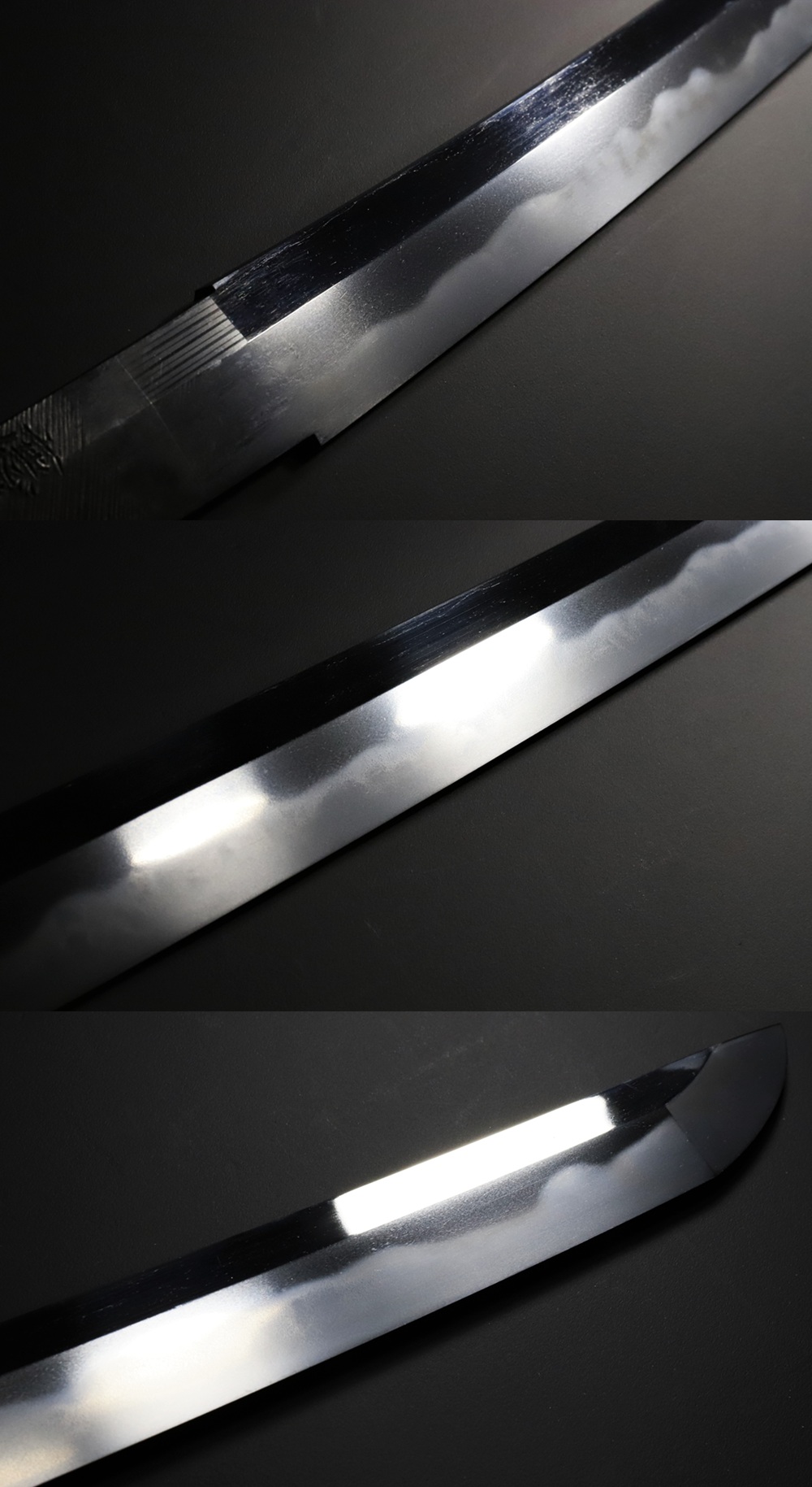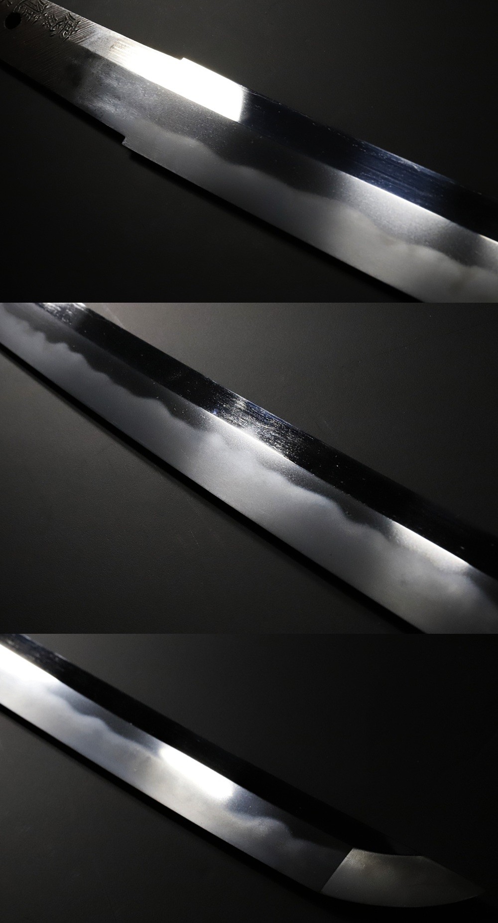 | 長島義勝は勝村徳勝門人。正勝、長勝らと共に師徳勝の鍛刀協力者として活動した。本作は、小板目よく詰んだ地鉄に焼高く丁子交じりの互の目乱れ刃文で華やか。刃文には小沸よく付いて匂口深く足入り葉頻りに入る。また茎の鑢目太く、師徳勝が秘伝書を授けられたという細川正義の作風・茎仕立てであることから、本刀工の義勝は大師匠である細川正義の影響を受けていたであろう。地刃共に健全。本作は「銕の意匠-水戸刀と刀装具の名品-」・「鋼と色金-茨城の刀剣と刀装-」所載。2019年特別保存刀剣審査合格。 |