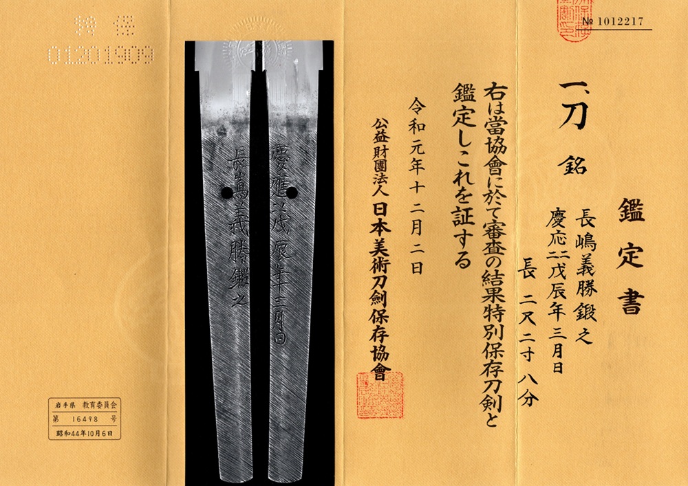 表: 長嶌義勝鍛之 裏: 慶應二二戊辰年三月日 |