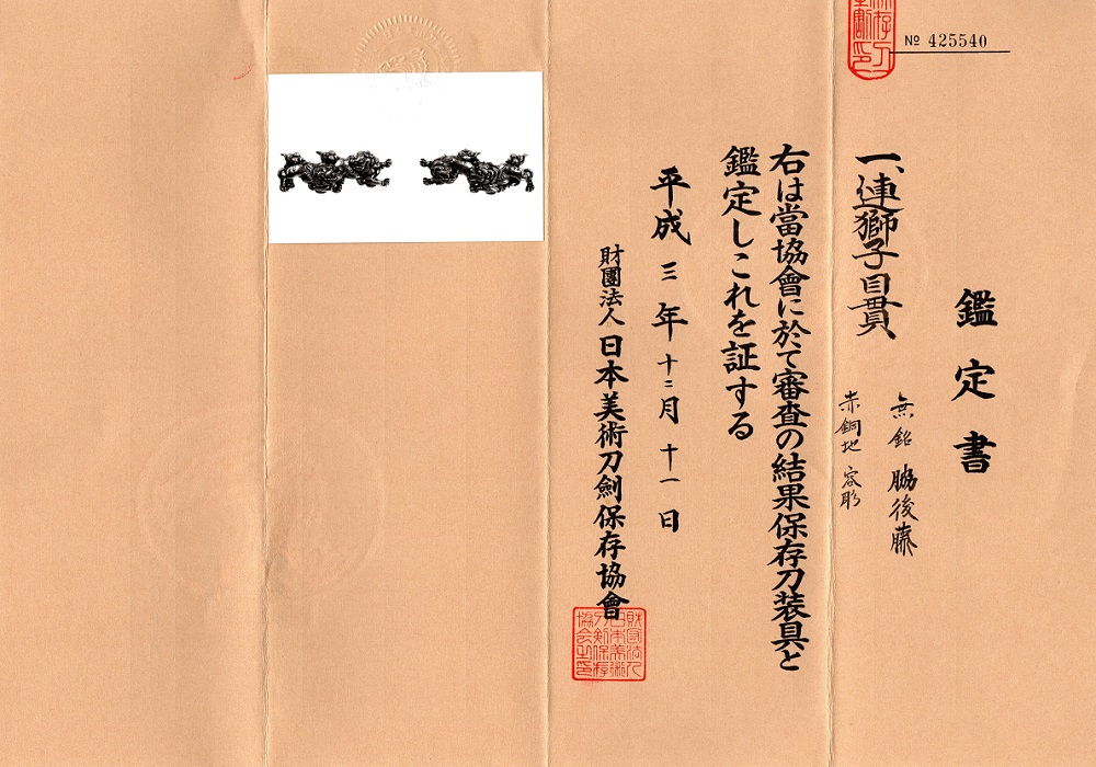 | 鑑定書 | 保存刀装具 |