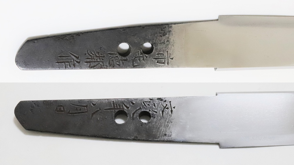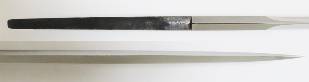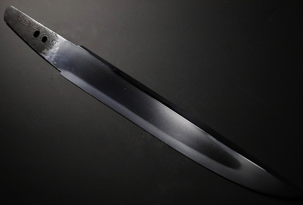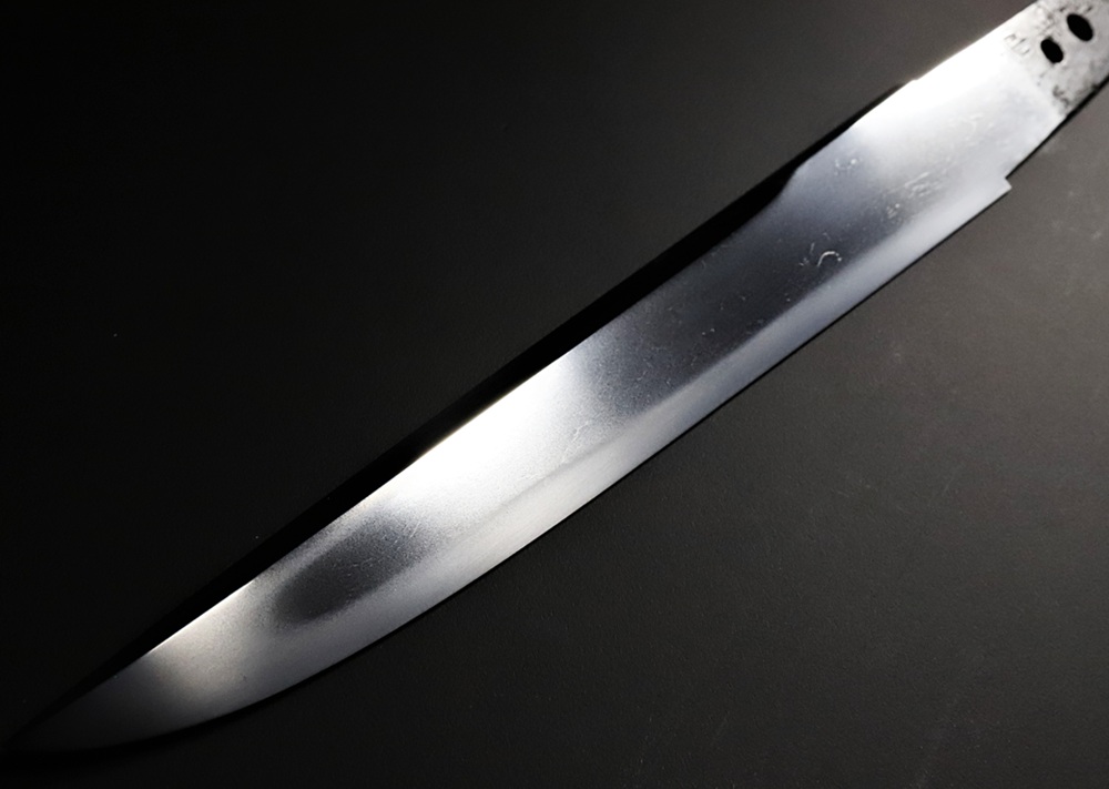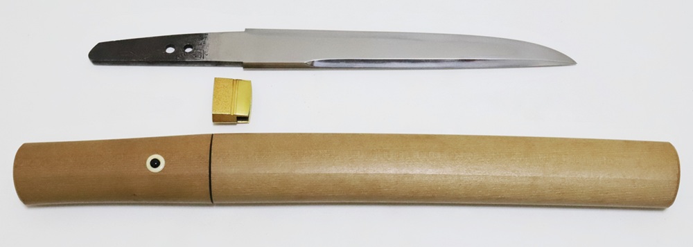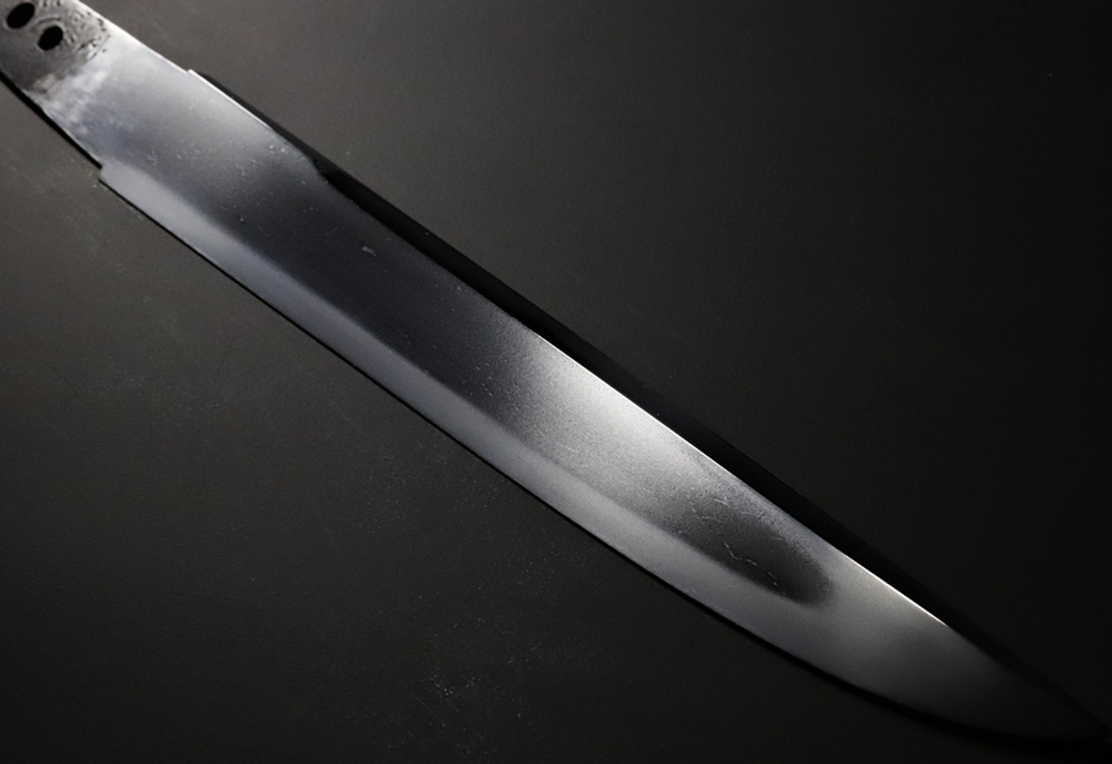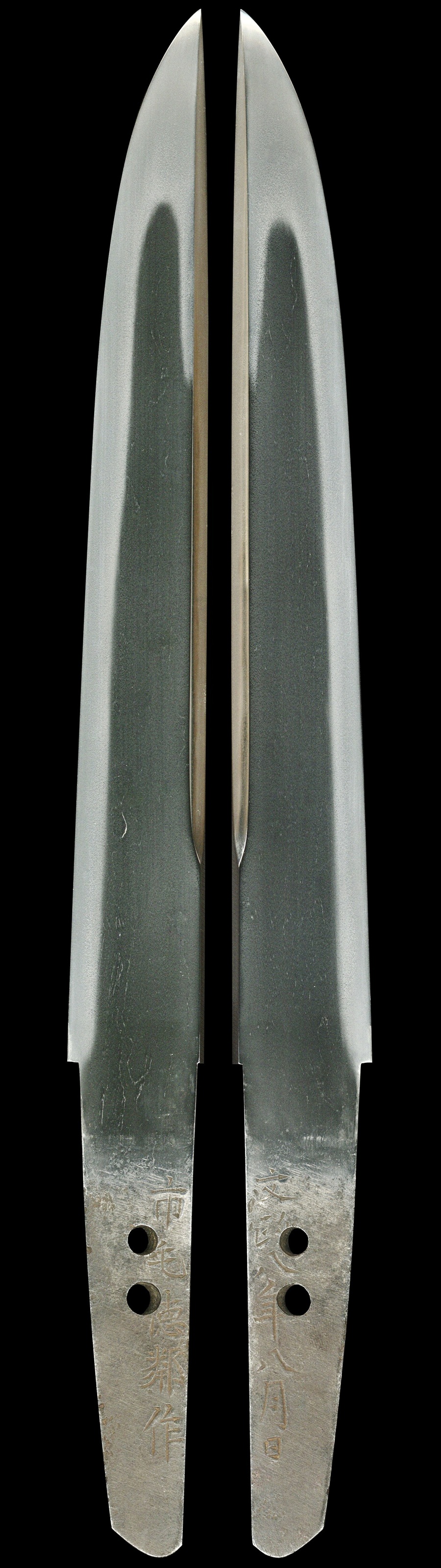 市毛源左衛門徳鄰(のりちか・とくりん)は安永六年(1777)常陸国茨城郡生まれ。寛政六年(1794)水戸藩士久米長徳に入門。後に摂津の尾崎助隆に入門。文化六年(1809)助隆同門の直江助共と同時に水戸藩工を命ぜられる。天保元年(1830)上京して伊賀守金道の斡旋で近江介を受領。天保六年(1835)59歳没。本作は、腰から上の棟側を削いで棟を僅かに残す変り形の造込み。特別な注文を受けた作であろう。小板目良く詰んだ地鉄に、小沸が付いて匂い口が深い穏やかな湾れ調刃文。水戸新々刀随一の刀工で作品希少の徳鄰らしさが存分にあらわれた出色の短刀。徳鄰49歳、円熟期の傑作。2004年審査保存刀剣を2024年12月審査で特別保存刀剣に昇格。