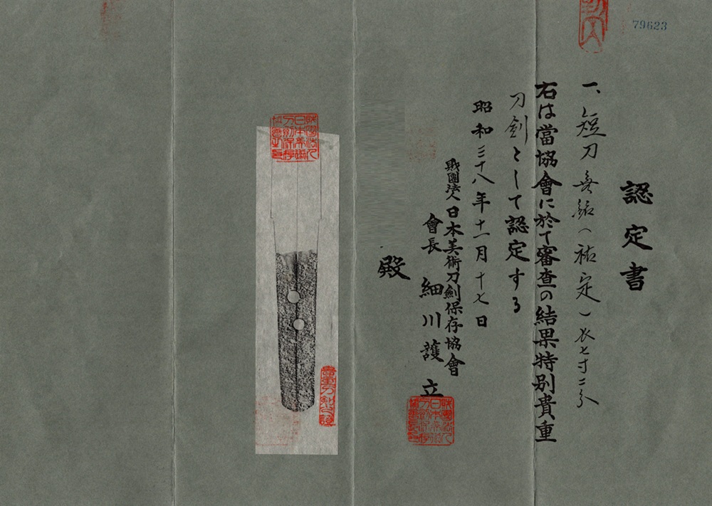 | 鑑定書 | 特別貴重刀剣 |