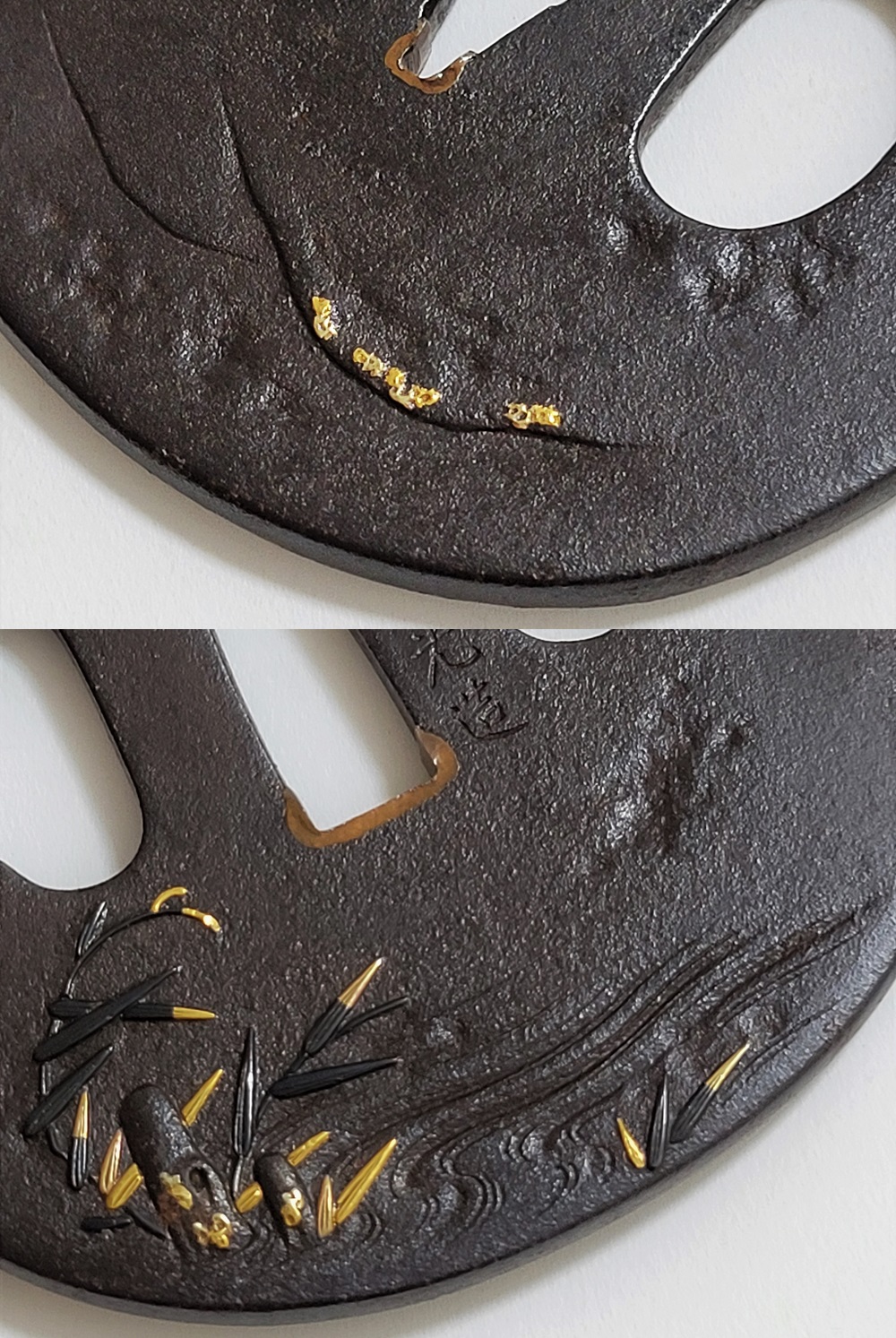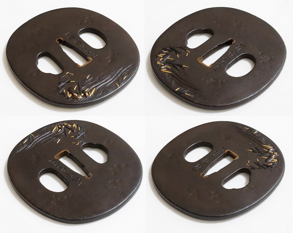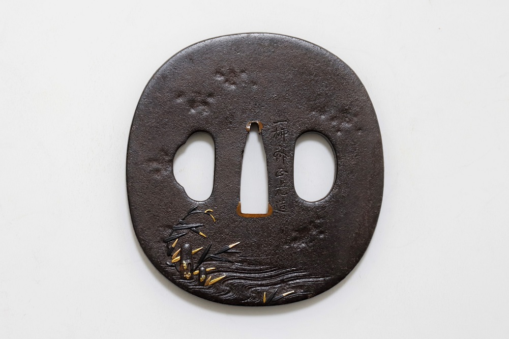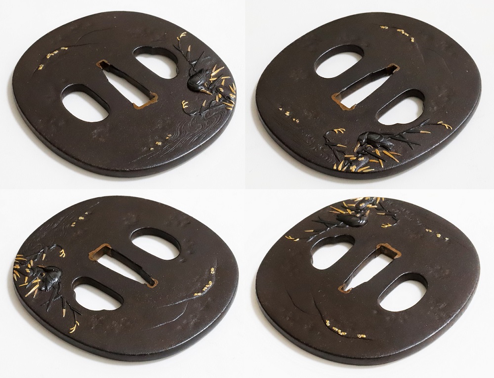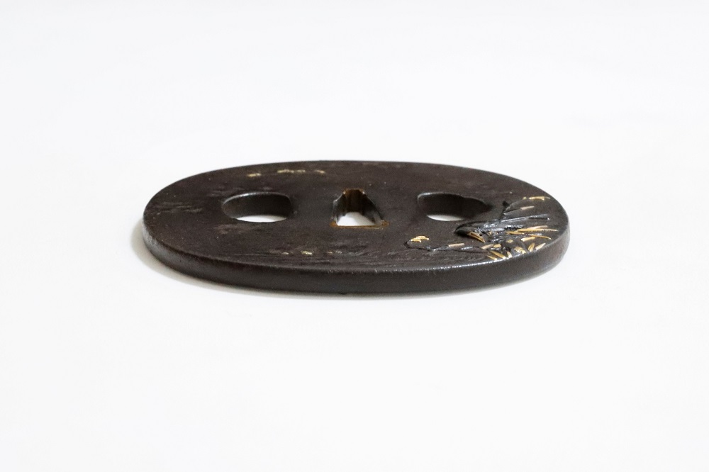 | 材質 | 鉄地 竪丸形 高鋤彫 象嵌色絵 |