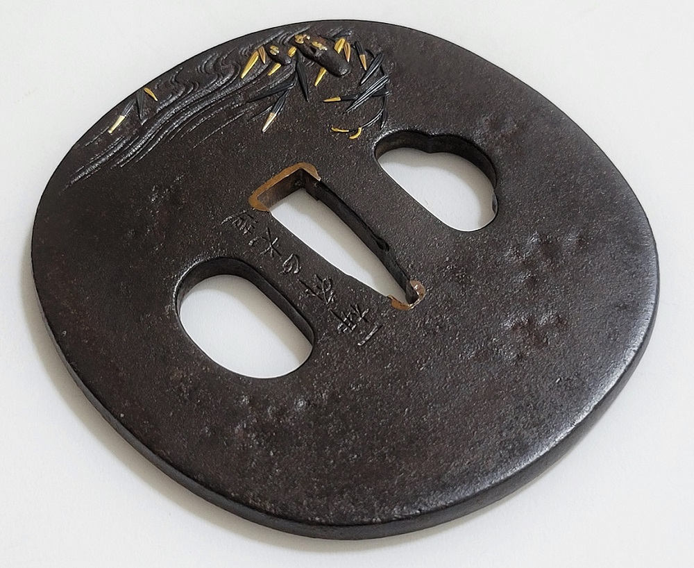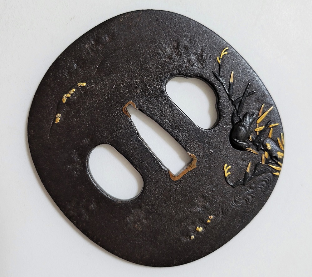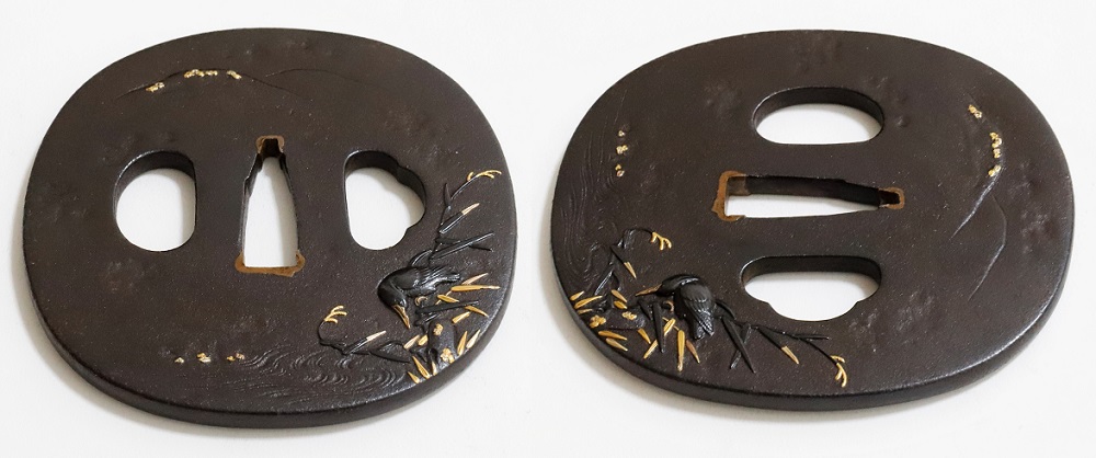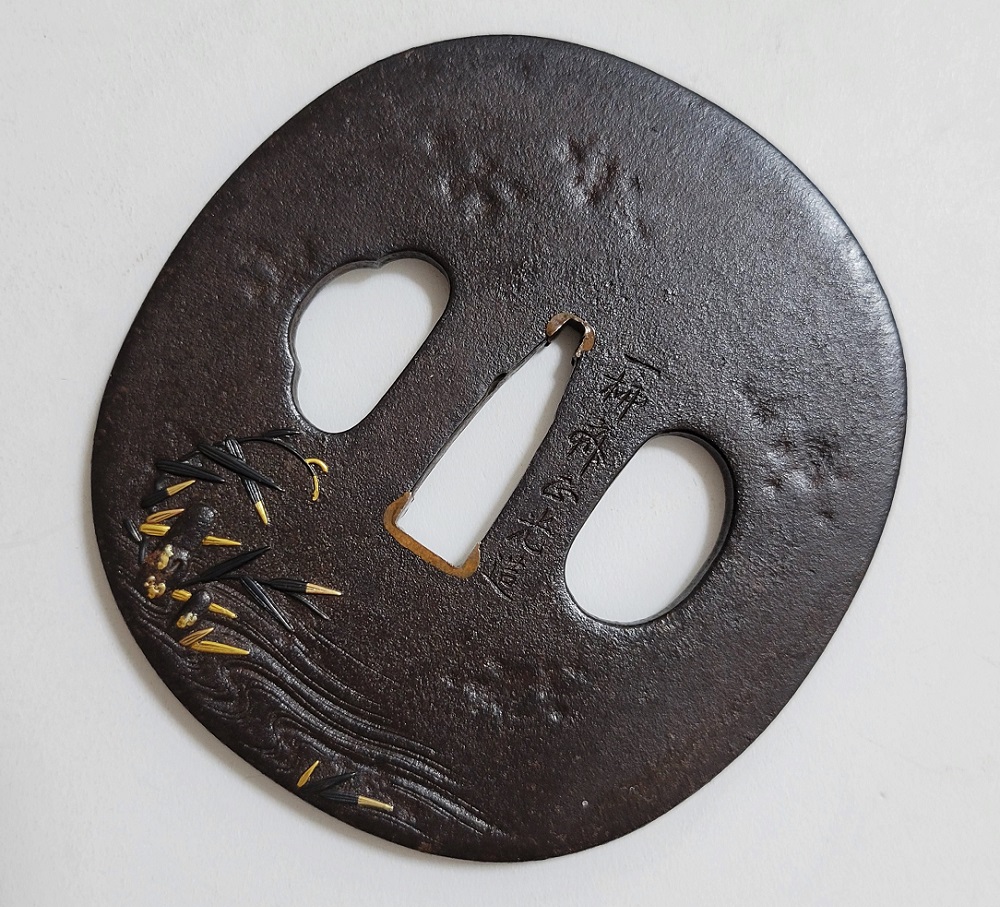 | 材質 | 鉄地 竪丸形 高鋤彫 象嵌色絵 |
