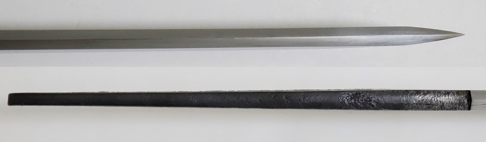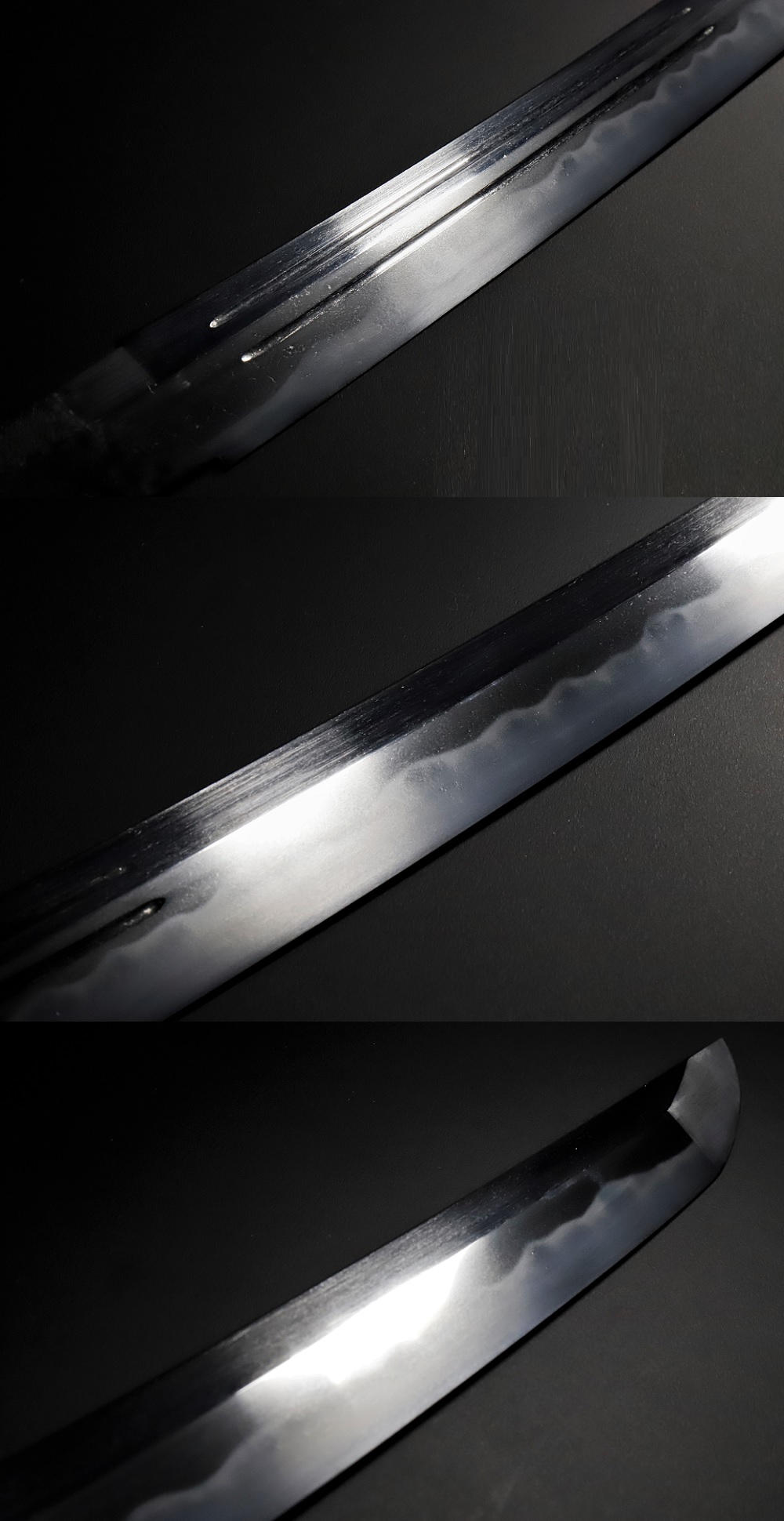 | 姿 | 鎬造り庵棟、中切先 程よく反りが付き、身幅広く刃区深く残る健全な姿 |