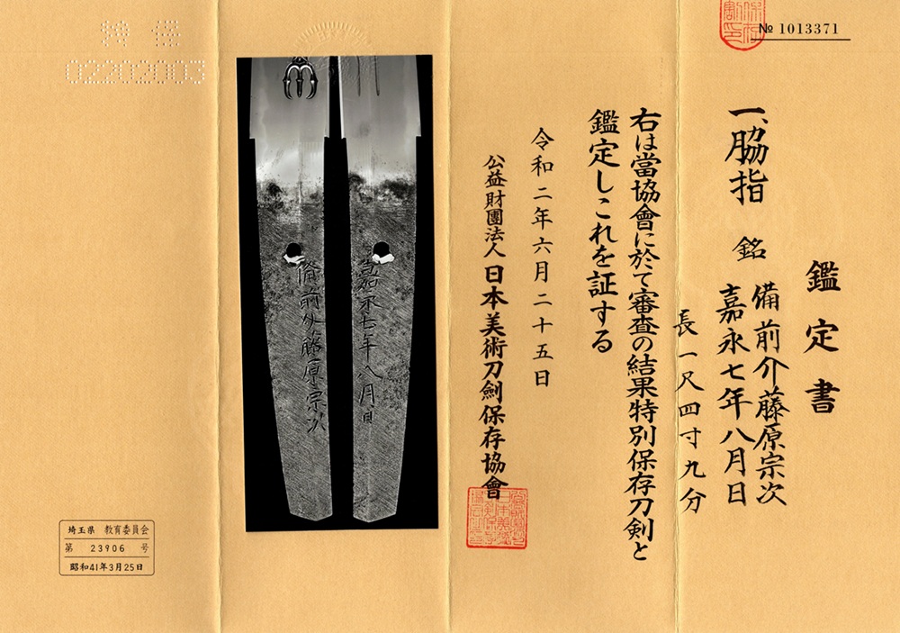 表: 備前介藤原宗次 裏: 嘉永七年八月日 |